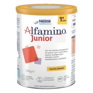 - ALFAMINO® JUNIOR contains a customized blend of vitamins and minerals required to cover the needs of children aged 1–13 years. ALFAMINO® JUNIOR has been designed to meet the NHSc NF criteria for micronutrients.